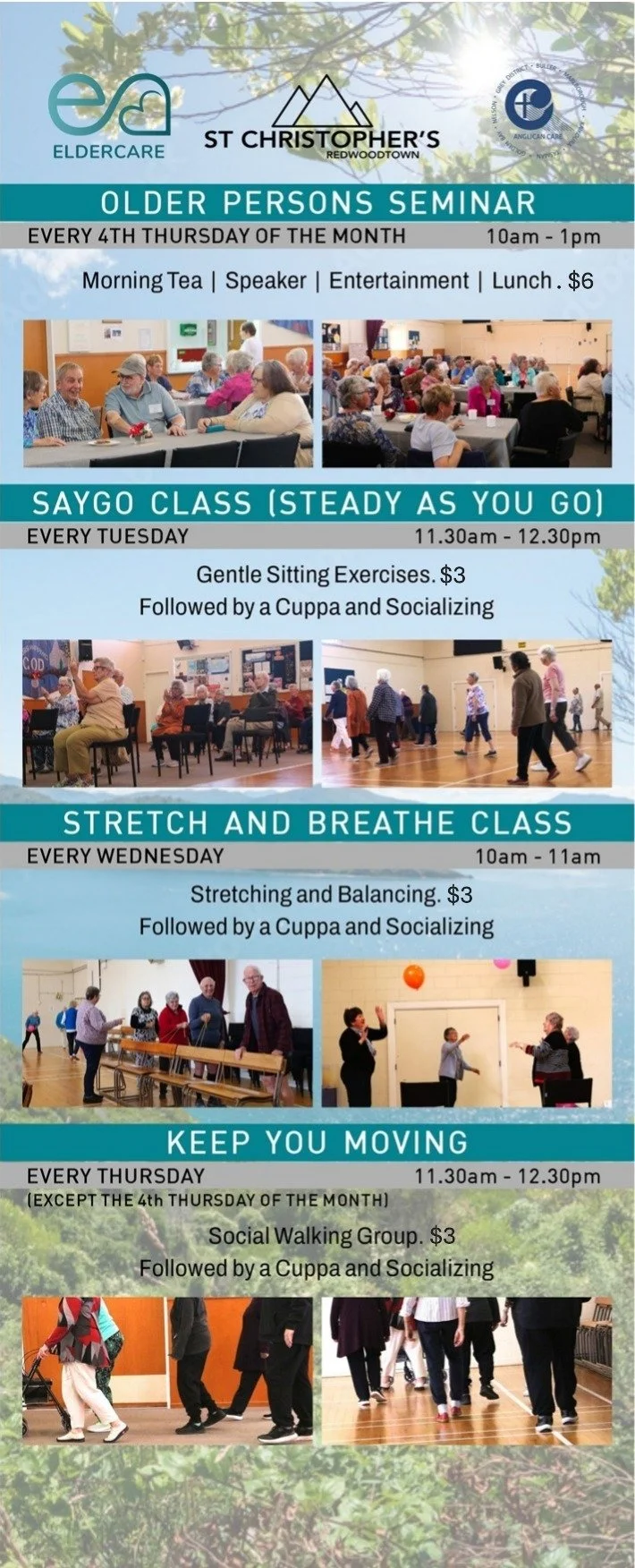 Eldercare Programmes Tuesday, 1 April 2025 11:30 am 12:30 pm 11:30 12:30 St Christopher's 92 Weld Street Blenheim, Marlborough, 7201 New Zealand (map) Google Calendar ICS